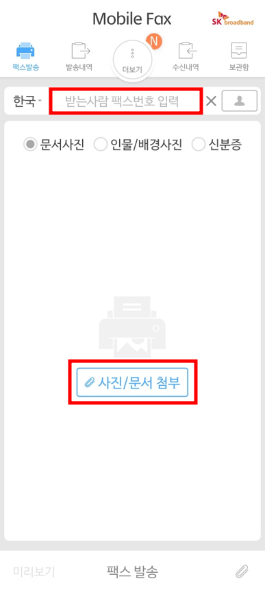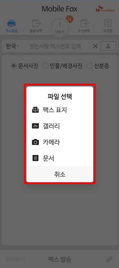 작성이 필요 없으시면 바로 사진이나 문서를 첨부하셔서 팩스발송을 누르시면 완료됩니다.