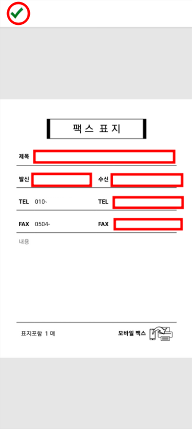 팩스 갑지가 필요하신 분은 제목과 발신, 수신란에 작성하신 후 왼쪽 상단 초록색 v 버튼을 누르시면